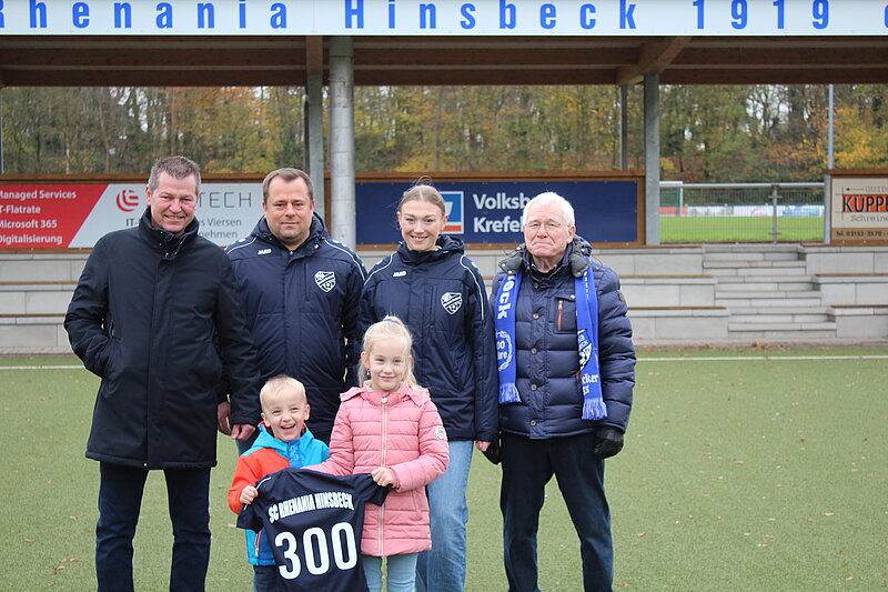 Das war eine Überraschung für den vierjährigen Mats: Er ist das 300ste Mitglied in der Jugendabteilung des SC Rhenania Hinsbeck. Der Vorsitzende Michael Gelsz, Jugendleiter Sebastian Manthey sowie Jugendkoordinatorin Paula Russmann und Ehrenvorsitzender Franz Haase begrüßten Mats Nysen als Jubiläumsmitglied der Jugendabteilung des SC Rhenania Hinsbeck. Mats vertritt die Familie Nysen schon in der vierten Fußballgeneration. Während in vielen Fußballvereinen die Mitgliederzahlen rückläufig sind, besonders in den Jugendmannschaften, ist es bei Rhenania anders. Der Verein machte in den letzten fünf Jahren eine äußerst positive Entwicklung. So verdoppelte sich dort die Mitgliederzahl. Der Gesamtverein vergrößerte sich damit auf 597 Mitglieder.