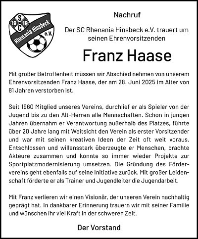 Liebe Vereinsmitglieder, Familienangehörige, Freunde, liebe Hinsbecker!