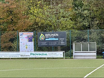 Schon gesehen? Unser erstes neues Zaun-Werbebanner (4 x 2 m) der Firma Brunen GmbH & Co. KG Heizung und Sanitär hängt jetzt gut sichtbar gegenüber der Tribüne! Ein echter Hingucker –wirksame Werbung, die auffällt und dabei nur einen Bruchteil einer herkömmlichen Anzeige kostet.