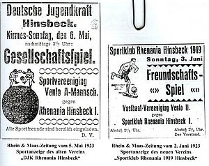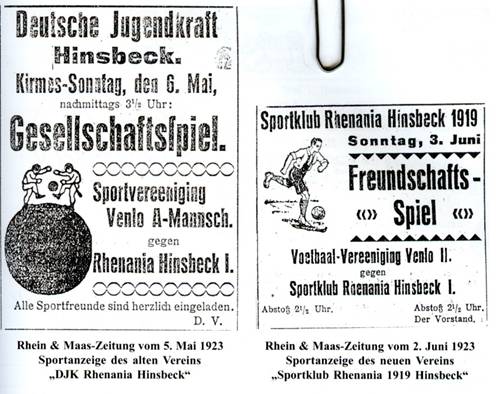 Man nannte sich jetzt „Sportklub Rhenania Hinsbeck 1919“.